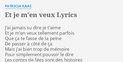 Et Je M En Veux Lyrics By Patricia Kaas J Ai Jamais Su Dire